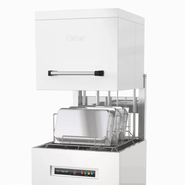 A Lava-louças de utensílios NT 730 é multifásica e aceita diferentes tensões, facilitando a operação com um painel de controle simples e intuitivo. Equipada com controles automáticos de tempo de ciclo, nível de solução do tanque e temperaturas de lavagem e enxágue, garante resultados consistentes a cada ciclo.