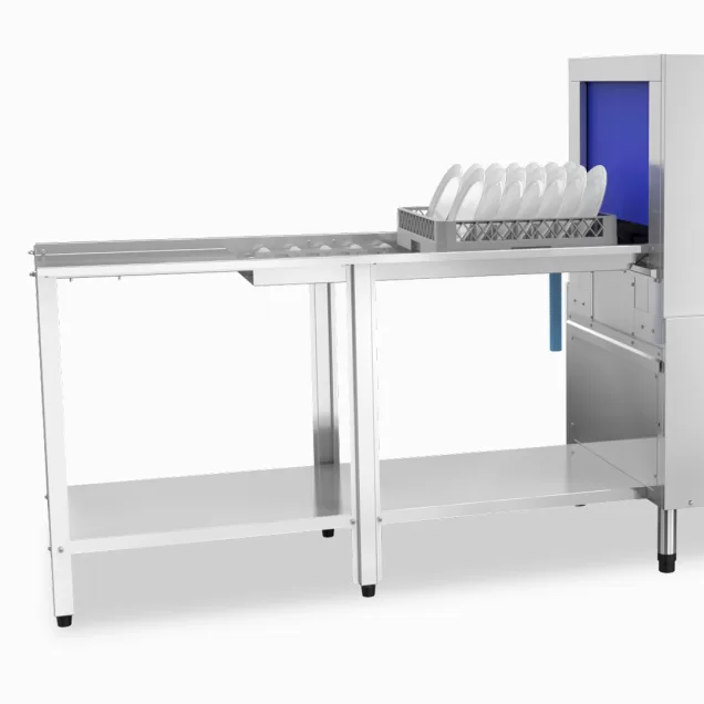 Os acessórios padrão incluem duas gavetas com capacidade para 18 pratos ou 9 bandejas, uma gaveta para louças especiais e uma gaveta com capacidade para 16 copos plásticos e 240 talheres. A máquina também possui termômetros digitais para monitorar as temperaturas de lavagem e enxágue com precisão.