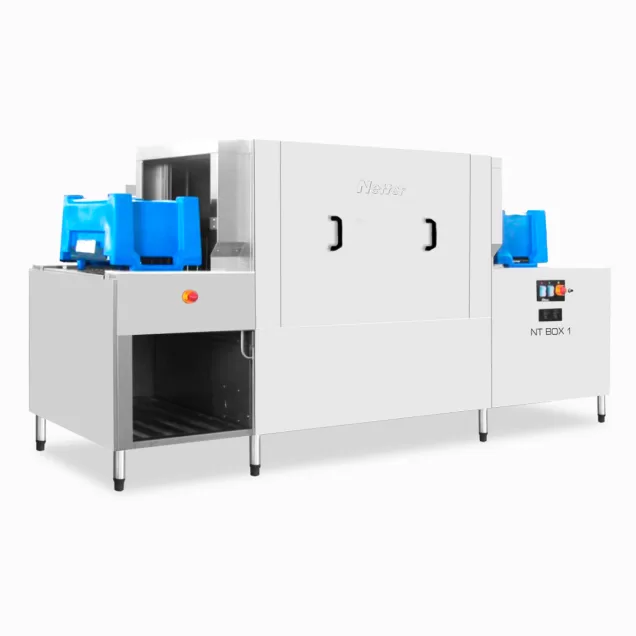 A Lavadora NT BOX 1 da Netter é uma solução eficiente e confiável para a higienização de caixas plásticas e térmicas, cubas padrão GN 1/1 e outros recipientes. Com capacidade produtiva de até 210 caixas por hora e velocidade ajustável da esteira, essa lavadora realiza lavagem e enxágue através de braços giratórios superiores, inferiores e laterais, proporcionando uma limpeza completa e sem atritos sobre a esteira transportadora.