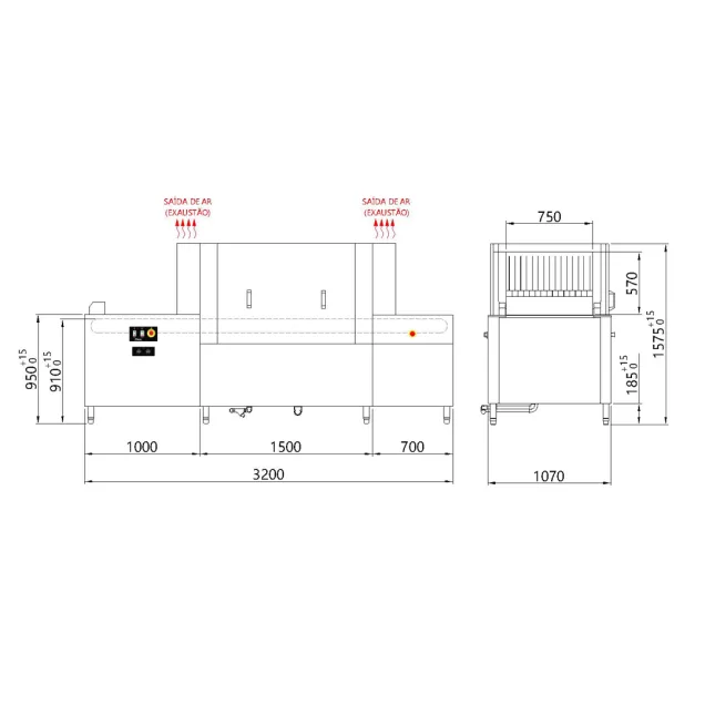 DIMENSÕES (LxPxH) mm:3200 x 1070 x 1575